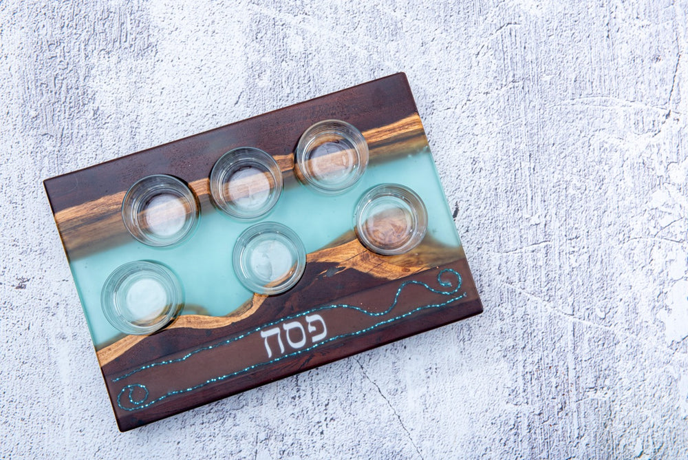 Introducing our exquisite Yarden Passover Display Tray—a harmonious fusion of craftsmanship and symbolism. Crafted from two slices of live-edge solid wood delicately joined in harmony with aqua resin, resulting in not just a tray, but a visual and tactile expression of family bonds. This stunning piece is a testament to the beauty of tradition and artistry.